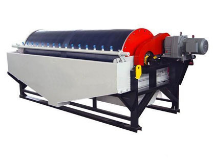 其原理是當(dāng)?shù)V漿進(jìn)入磁場(chǎng)區(qū)時(shí),其中強(qiáng)磁性礦物被吸附在圓筒表面,弱磁性和非磁性礦物被水流沖洗排出,而吸附在圓筒表面上的磁性礦物隨圓筒旋轉(zhuǎn),被帶出磁場(chǎng)區(qū),用沖洗水沖入精礦槽中,完成分選作業(yè)。